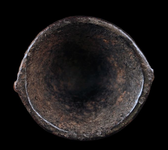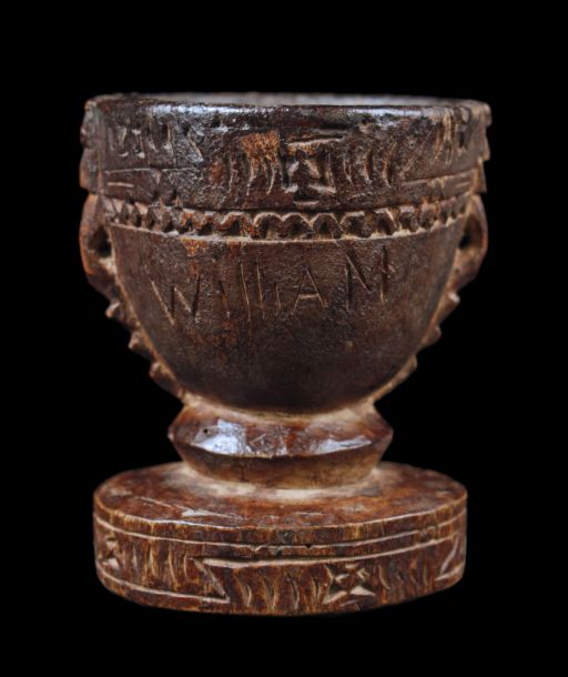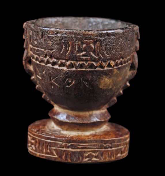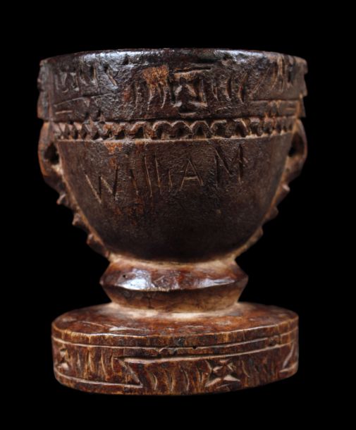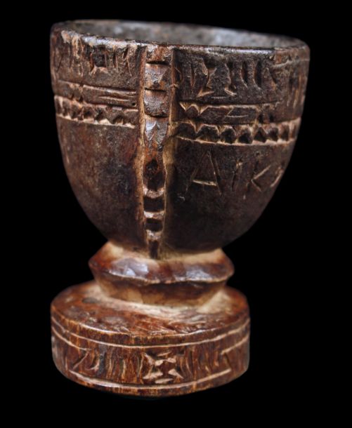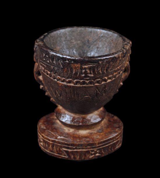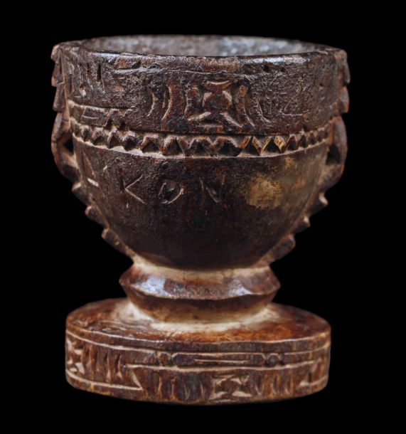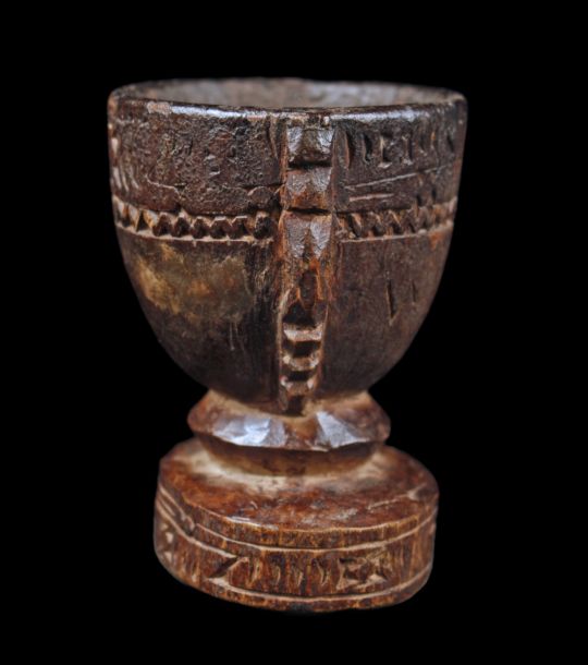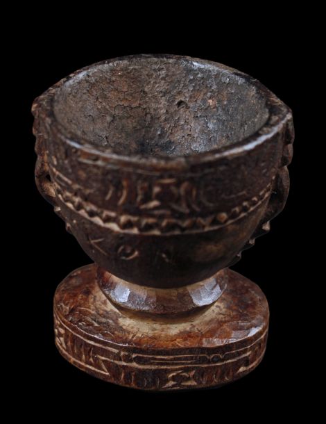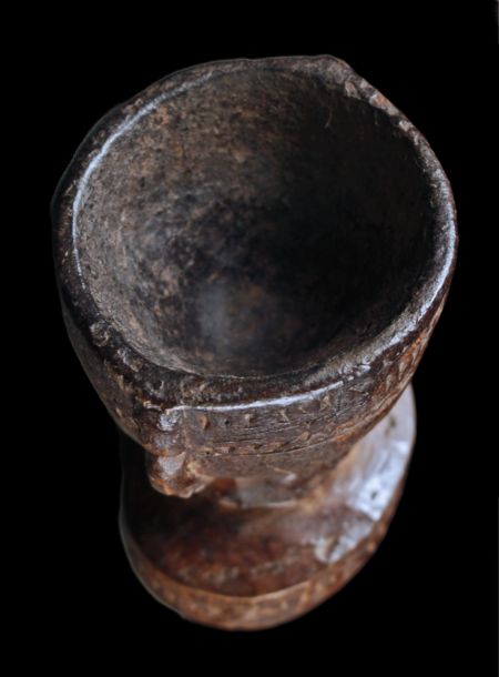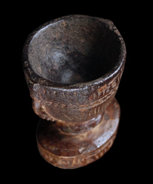 Mortier à bétel Arapesh présentant une très belle patine d'usage. Bon état général. Nom gravé de l'ancien propriétaire. Les personnes agées et édentées utilisent ce type de mortier pour y écraser les noix de betel (aussi appelées noix d'arec) avant de les mâcher.