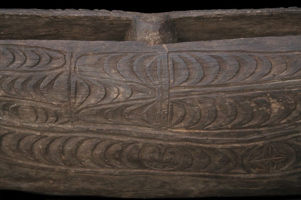 Ancien tambour à fente appelé "garamut". Le tambour à fente de village sert principalement de moyen de communication, mais peut également servir à rythmer les cérémonies traditionnelles ou "singsings". Bois dense, patiné par le temps et l'usage. Personnage ou animaux totémiques à chaque extrémité (ancêtre et cacatoès). Entièrement décoré de dessins tribaux sur les deux faces. Beau spécimen en très bon état général. NOUS VOUS INVITONS A DECOUVRIR NOTRE ARTICLE, NOS PHOTOS ET VIDEO IN SITU, CONSACRES A CET INSTRUMENT AUX SONORITES ENVOUTANTES VIA NOTRE LIEN FACEBOOK, ACCESSIBLE PAR RETOUR SUR LA PAGE BOUTIQUE DE CE SITE.