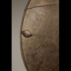 Very nice old wooden dish with a nice used patina. This type of wooden dish, now replaced by plate in enamel, acted as culinary utensil. Fast disappearing Papuan common object... Partialy decorated with clamps to be suspended in the hut and with name of owner carved.