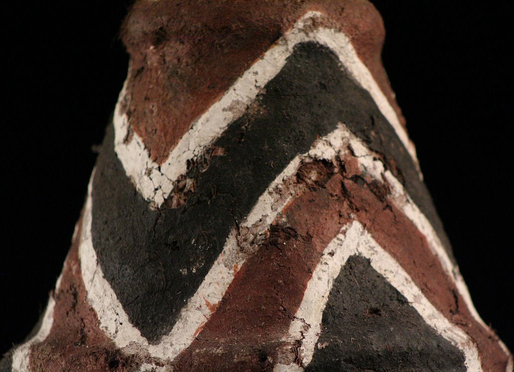Rare ceremonial headdress made with vegetal fibers, clay and natural pigments. Collected on Malekula islands in Vanuatu archipelago.