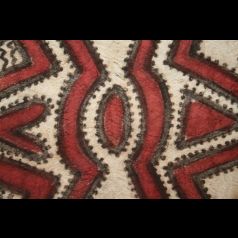 Painted beated bark called Tapa. Tapa cloth is the first material in this region of the world that has been available for people to make clothes, covers, mosquitoe nets, exchange currency etc. Natural pigments.