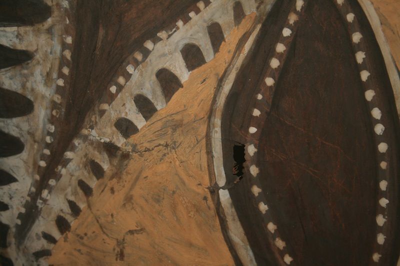 Painting on bark collected in upper sepik area in Papua New Guinea. Those painted sago palm barks are displayed on the inside part of the roof of the spirit house and represent in a abstract or representational way the faiths of clans. Assembled the some in the others, they so hide the ceilings of these big prestigious Haus Tambaran. Piece of sago bark and natural pigments. Base on demand only (30 euros extra). You can find our article about painted bark on facebook.