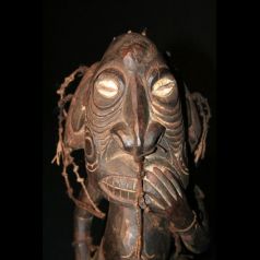 Statuette représentant un ancêtre scarifié sur le thème des écailles de crocodile. Bois, pigments naturels.