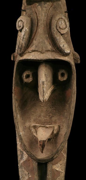 Minja cult figure from Nokuma people in waskuk hills area. Minja figures are linked to yam harvest and symbolise the growing period of this sacred tuber on the ground. Hard wood. Exposed and sold with an independant custom base. Parcticularly interesting tribal piece...