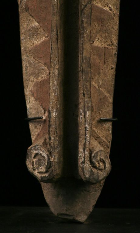 Figure de type minja de l'ethnie Nokouma. les figures minja sont exposées dans la Haus Tambaran au moment de la récolte de l'igname, tubercule sacré, cadeau des ancêtres. Cette sculpture symbolise la période de croissance de cette racine vénérée en terre. Exposée et vendue avec un socle de présentation indépendant. Belle pièce d'art tribal...