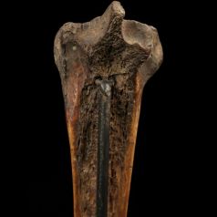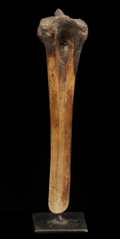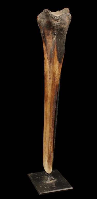Bone tool used to scrape the skin of cooked banana. Old custom item with interesting used patina.