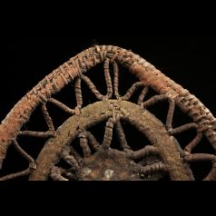 Maprik yam mask. Yam masks serve for dressing up the most beautiful yams just harvested. This root is one of the main food resource in the Sepik river valley. This mask in basketwork represents the head of the yam. Very symbolic way of proving that these sacred tubers indeed have a soul... Rush and natural pigments. Sold with a base.