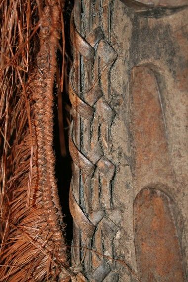 Big mask typical from Maramba village. Refer to the main mytic ancestor of the tribe. Face half human / half animal. Impressive mixt of natural materials : wood, pigments, clay overmodling, pig teeth, shells, hemp, osier. Huge caracter. Beautifull item...