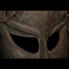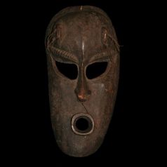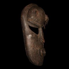 Beau masque papou représentant un ancêtre du clan. Visage sobre, très bien proportionné, aux formes typiques de l'ethnie Sawos. Sourcils évoquant une peau de crocodile. Bois monochrome.