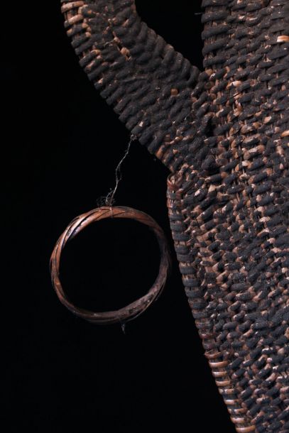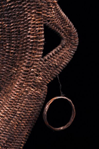Yam mask collected in the village of Maprik in Papua New Guinea. Yam masks are used to dress up the most beautiful yams selected at harvest time. This basketwork mask represents the head of the yam, a very symbolic way of proving that these sacred tubers do indeed have a soul... Braided rush. Exceptionnal size. Sold with a stand. Free Shipping.