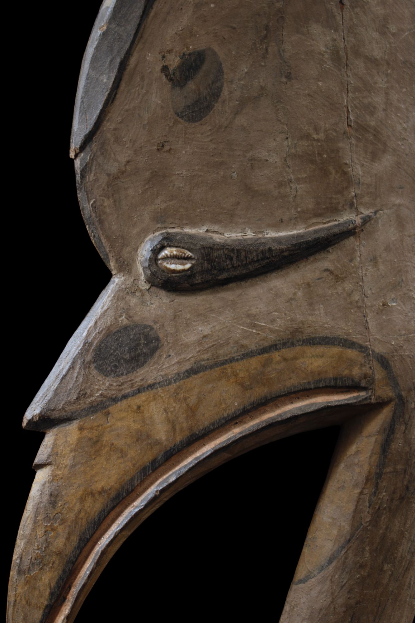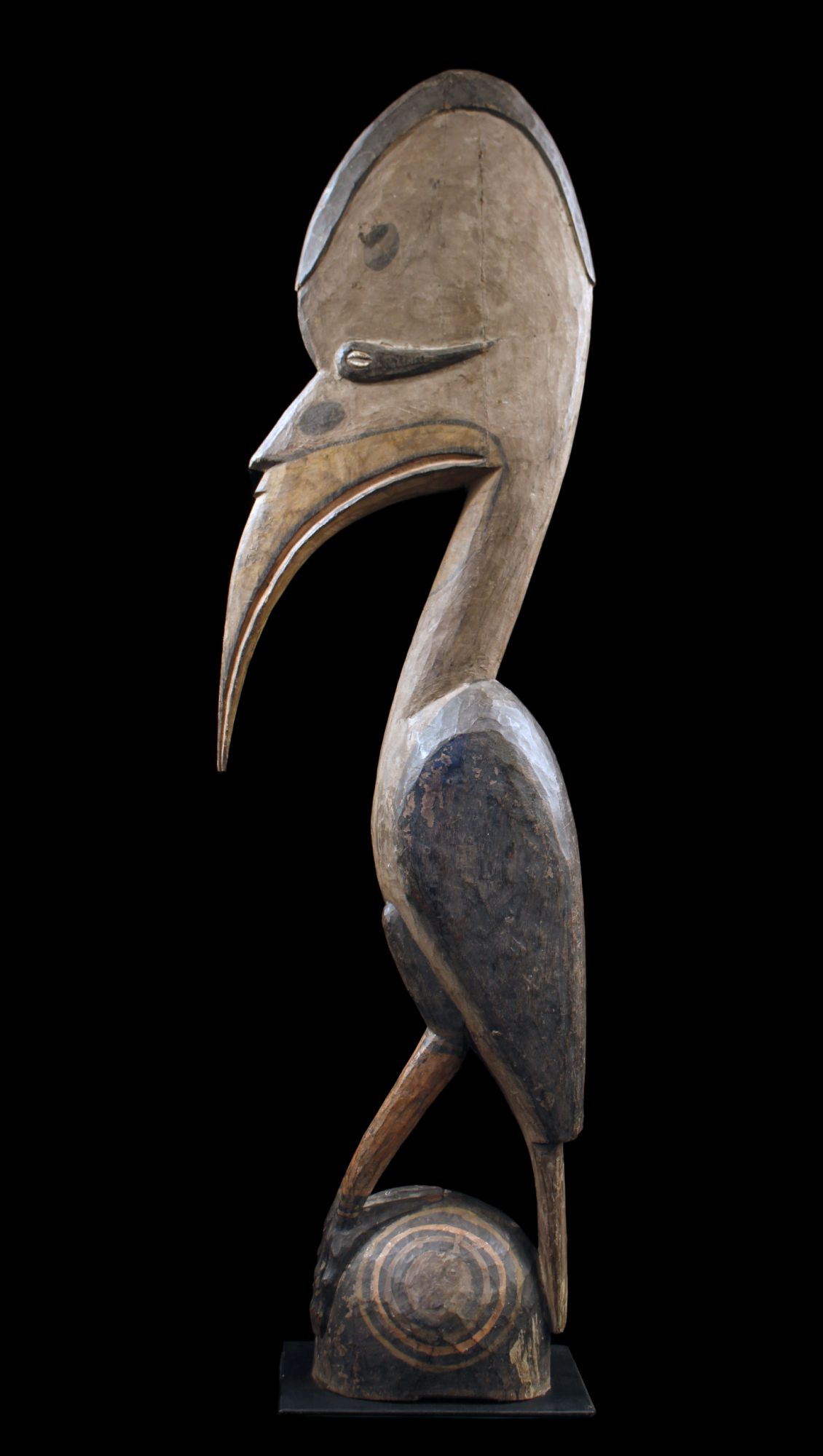 Imposant oiseau sculpté représentant un calao, animal symbole de sagesse. Les papous ont pour tradition de sculpter toutes sortes d'animaux totémiques associés à leur mythes et légendes. Bois et pigments naturels. Pièce unique particulièrement esthétique...