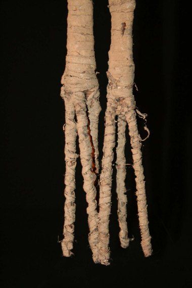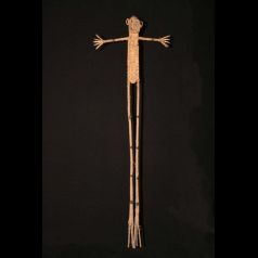 Very original character in basketwork in bamboo, wicker, clay and natural pigments. This type of strange character called " duty warrior " would make reference to the loss of culture of these tribes of coasts not knowing how to fight any more, the men having become bad warriors who do not know how to use any more the arms and their legs become too stiff... Papuan contemporary art. Very meaning ethnic object...