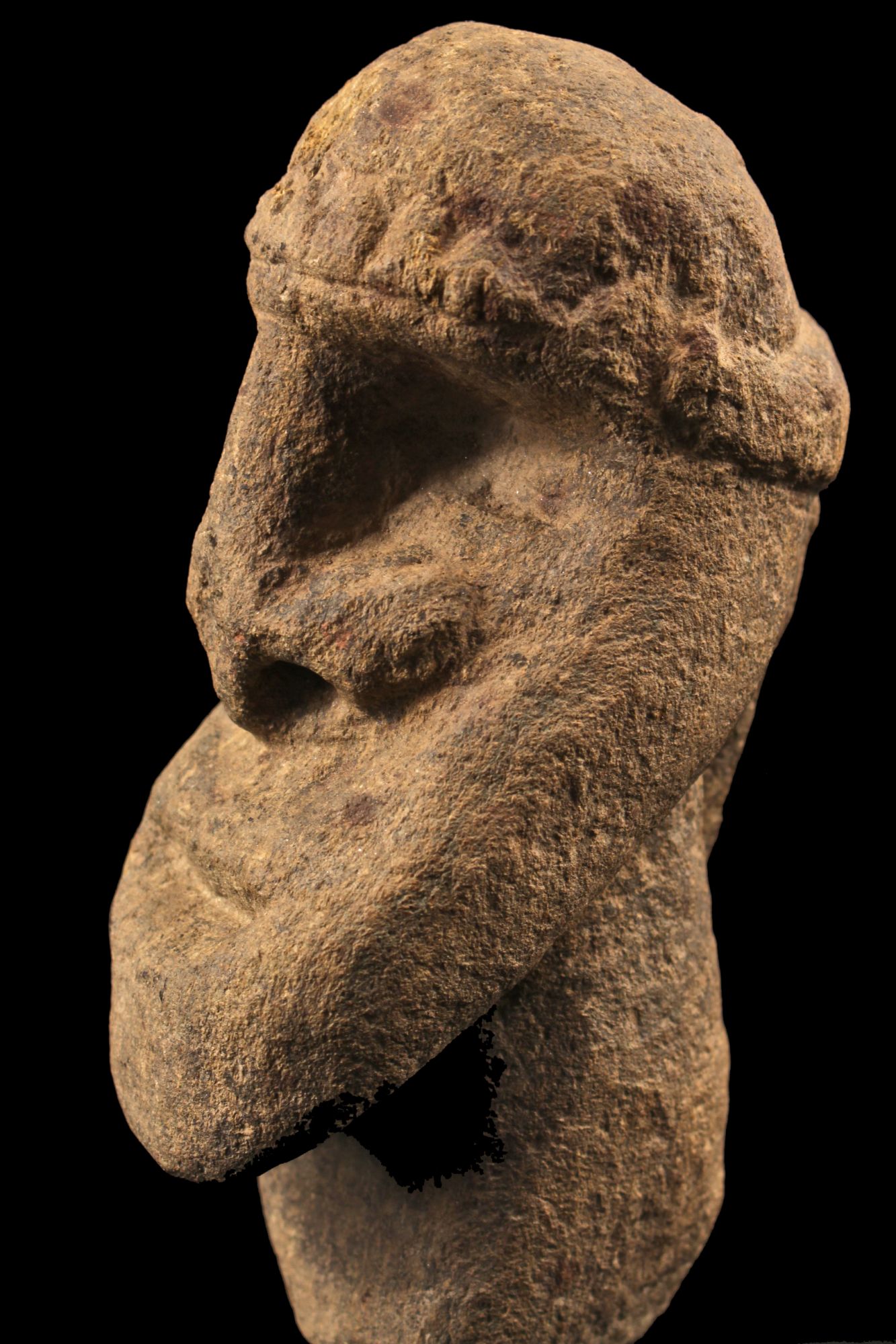 Rare carved stone collected in Blackwater area and showing an ancestor's head. Probably link to yam tuber. Exposed and sold on base.