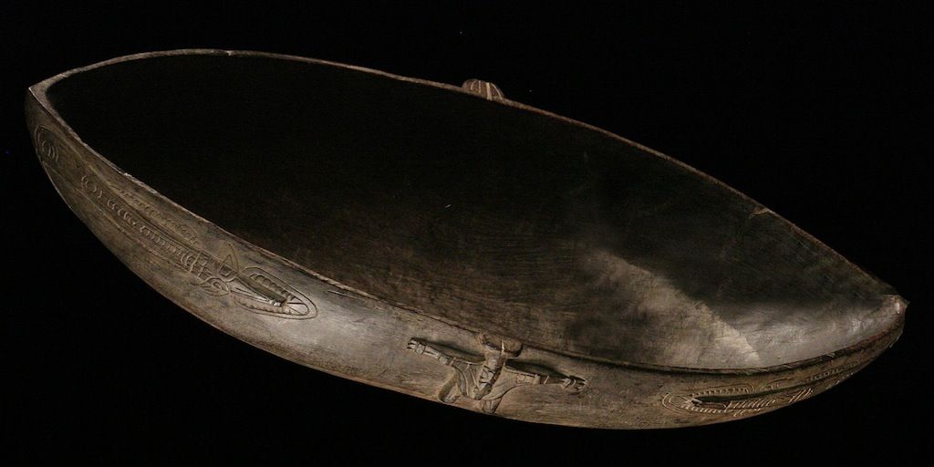 Siassi food bowl can be used as ceremonial food dish and also as prestigious exchange item between people from Siassi and Tami islands who know how to make them and who have the right to do it and people from the coast. Wood.