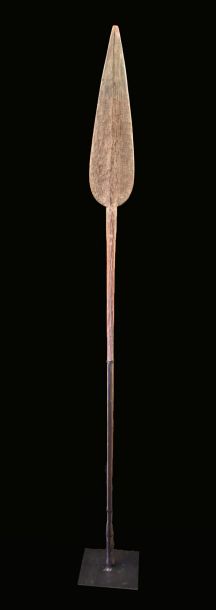 Child Sepik river paddle. The canoe remains the main way of travel in the Sepik valley area in Papua New Guinea. Wood with beautiful used patina. Sold with a custom base. Pictures from David & Amélie Godreuil.