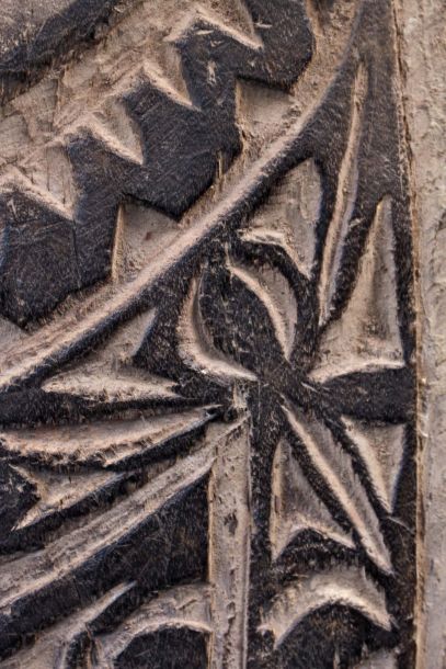 Very interesting hard wood votive board from a house of ceremonies and presenting a stylized face evoking fertility. These plates, placed in the house of men, show drawings that are the abstract representation of ancestors or natural elements (totemic animals and plants, moon, sun, stars, etc.). These are real artistic paintings whose symbols are a writing expression. Restoration and lack in upper part. Single piece.