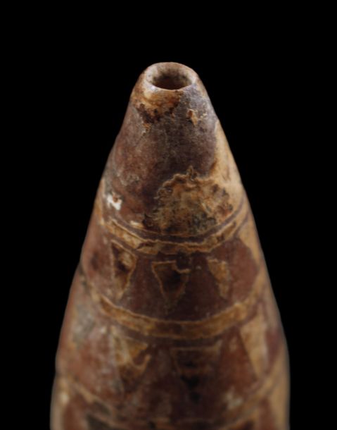 Small lime container made of calabashes. Lime is used when chewing the betel nut. Lime, betel nuts and mustard pods form a mastication mixture used in Papua New Guinea. Engraved gourd sold with a base.
