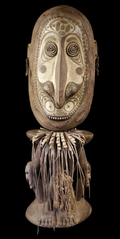 Magnifique siège d'orateur sculpté dans la masse, d'un seul tenant. Ce type de sculpture est une pièce centrale dans la maison des hommes. Le siège d'orateur a la même fonction que l'arbre à palabres. Toute discussion ou débat sérieux se déroule autour de cette sculpture qui symbolise l'ancêtre sacré et sage du clan. Bois, fibres et pigments d'origine minérale et végétale. Témoignage poignant de la culture papoue. Pièce avec une extrême présence.