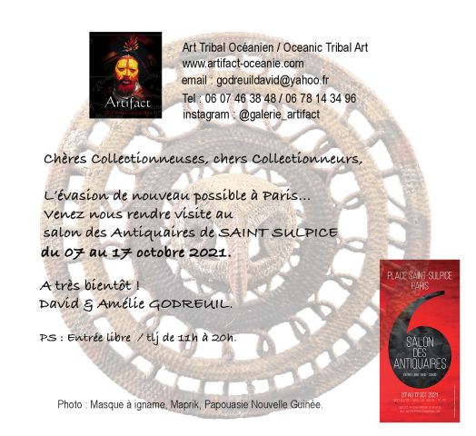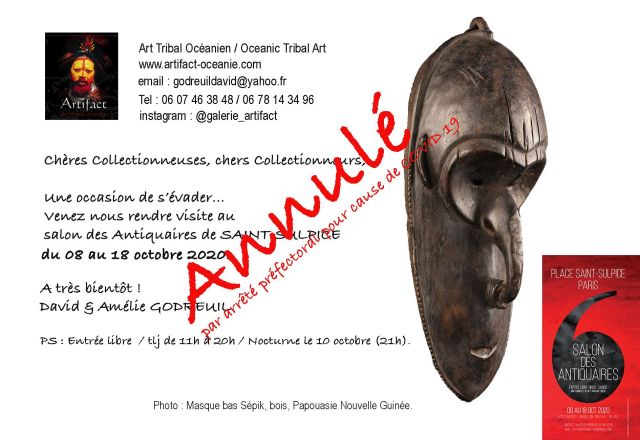 Notre rendez-vous semestriel au salon des Antiquaires de St Sulpice vient d'étre annulé pour la seconde fois consécutive... Voila donc une année entière sans rencontre possible avec notre fidèle clientèle parisienne et aucune possibilité pour nous de nouvelles rencontres. Nous le regrettons sincèrement car rien ne remplace ces échanges humains... Nous espérons pouvoir être présents pour la prochaine édition. En attendant, nous continuerons à mettre régulièrement en ligne les objets que nous avions prévus de présenter à cette édition et serons ravis de vous accueillir dans notre antre Breton pour une visite de notre Show Room qui, lui, garde sa porte grande ouverte contre vents et marées ... Prenez-soin de vous et à bientôt.