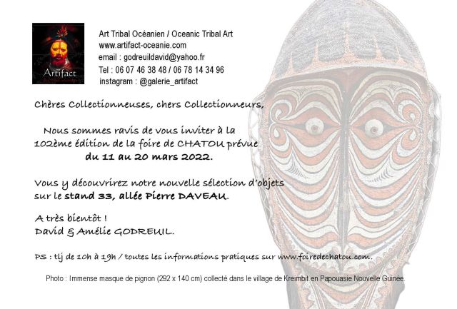 Our container left Wewak (Papua New Guinea) last November has finally arrived at home :))) -> A good opportunity to discover this new arrival on our online gallery and/or at our next exhibition at the 104th Fair of Chatou scheduled from 10 to 19 March 2023...