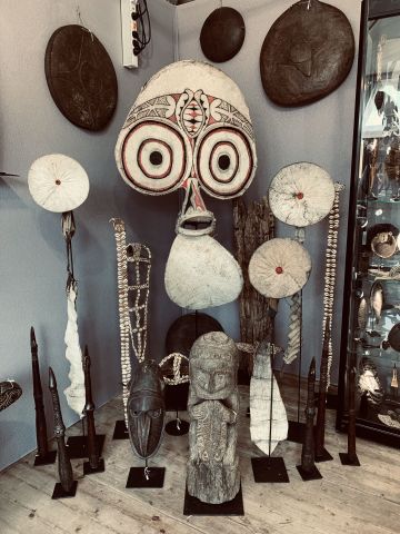 N'hésitez pas à passer nous voir en Bretagne pour découvrir notre collection. Nous accueillons avec plaisir sur rendez-vous (06 78 14 34 96). Vous y découvrirez la richesse de cette culture Mélanésienne que nous exposons à l'année dans notre ancienne ferme datant du 17ème siécle située sur la Côte de Granit Rose.