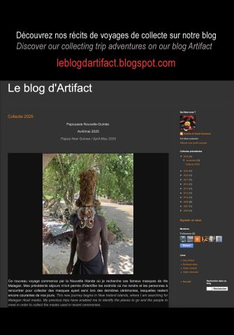 The adventures of our last collecting trip is now available on our blog Artifact through the link "Field photos" of this website. From the New Ireland to the banks of the Sepik river, take a brief immersion into papuan culture !