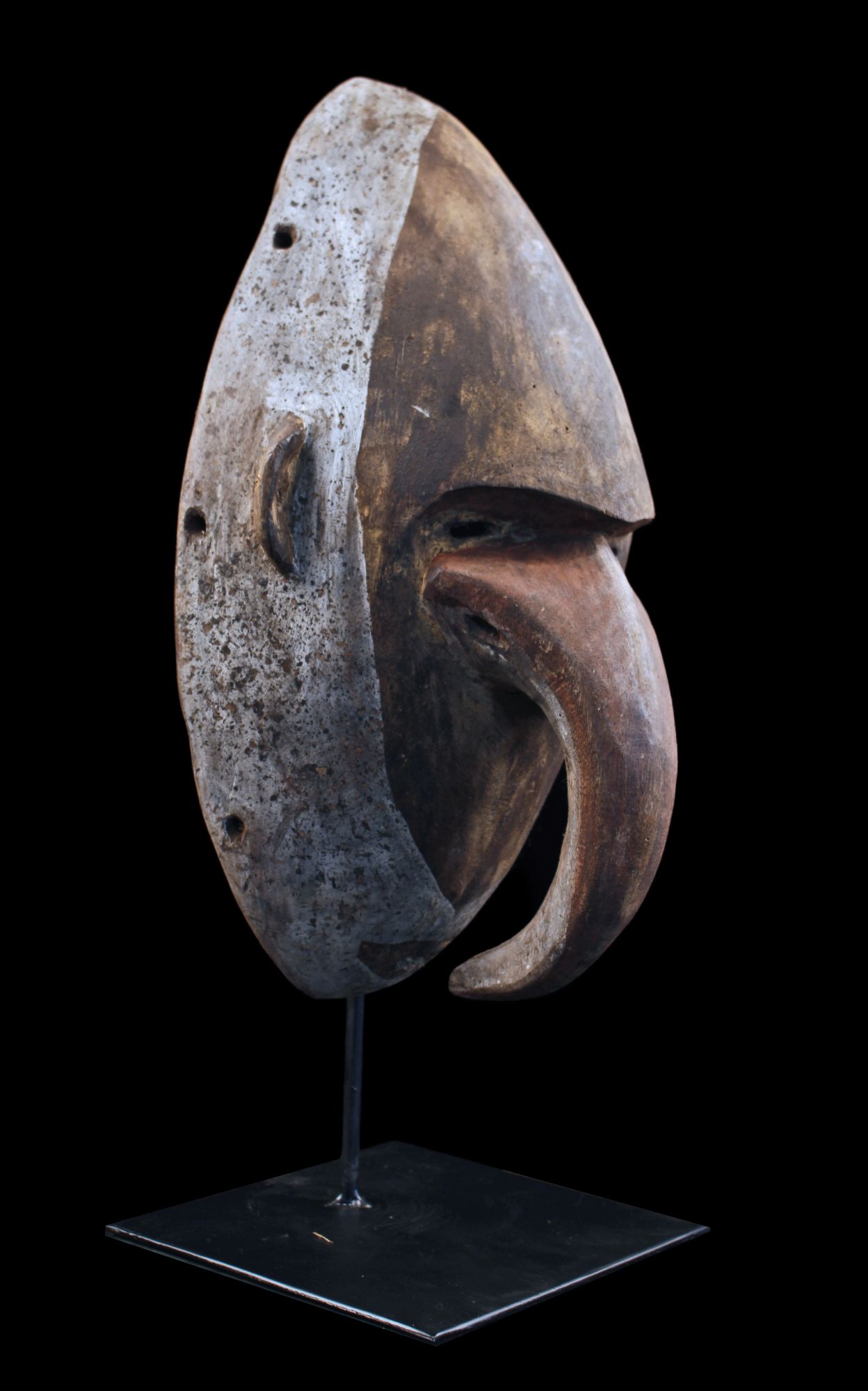 Anthropozoomorph mask representing a spiritual ancestor half man half bird. Collected in the village of Sassoya in Papua New Guinea. Wood with polychromy. Sold with a stand.