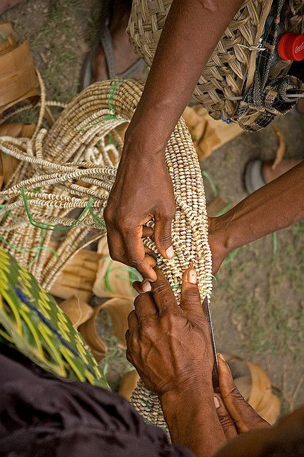 Tolai currency, still used nowadays and having a strong symbolic content. This currency consisted of thousand nassa shells interconnected by splints of wood and rolled up to form a disk, is a currency of compensation. Sold with a custom base.